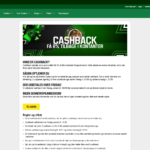 - Cashback er 10% af ugentligt nettotab, med et maksimum pr. uge (typisk 250 kr.).
